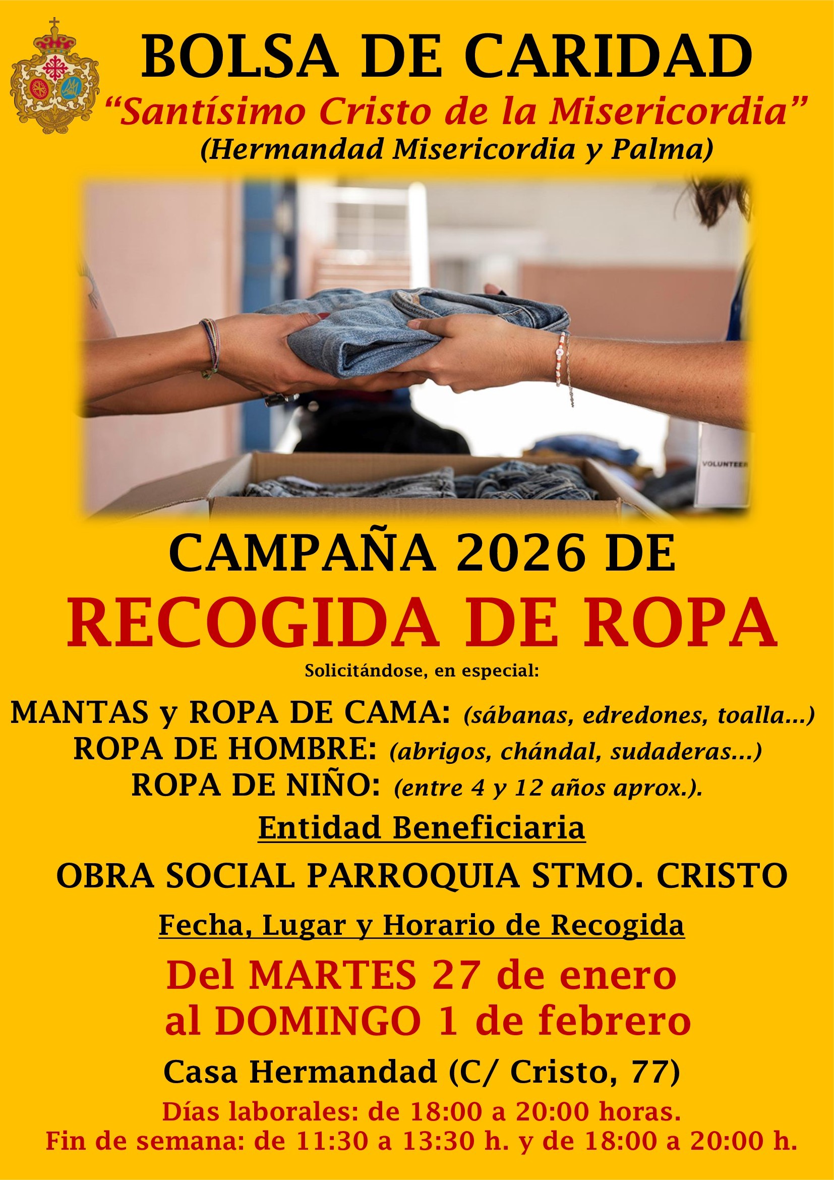 Recogida de Ropa 2026 de la Bolsa de Caridad "Stmo. Cristo de la Misericordia". Hermandad Misericordia y Palma