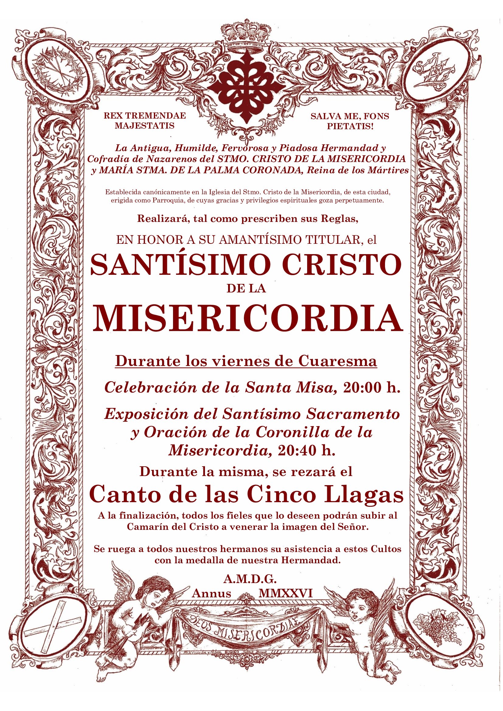 Comienzan los Cultos de los viernes de Cuaresma al Stmo. Cristo de la Misericordia. 20:00 h. Iglesia Parroquial