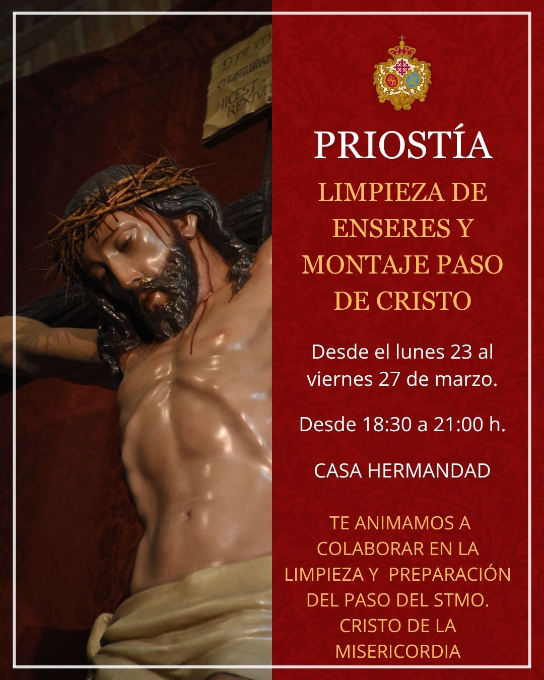 PRIOSTÍA. Comienza el montaje del paso del Stmo. Cristo de la Misericordia y continúan labores de limpieza de enseres