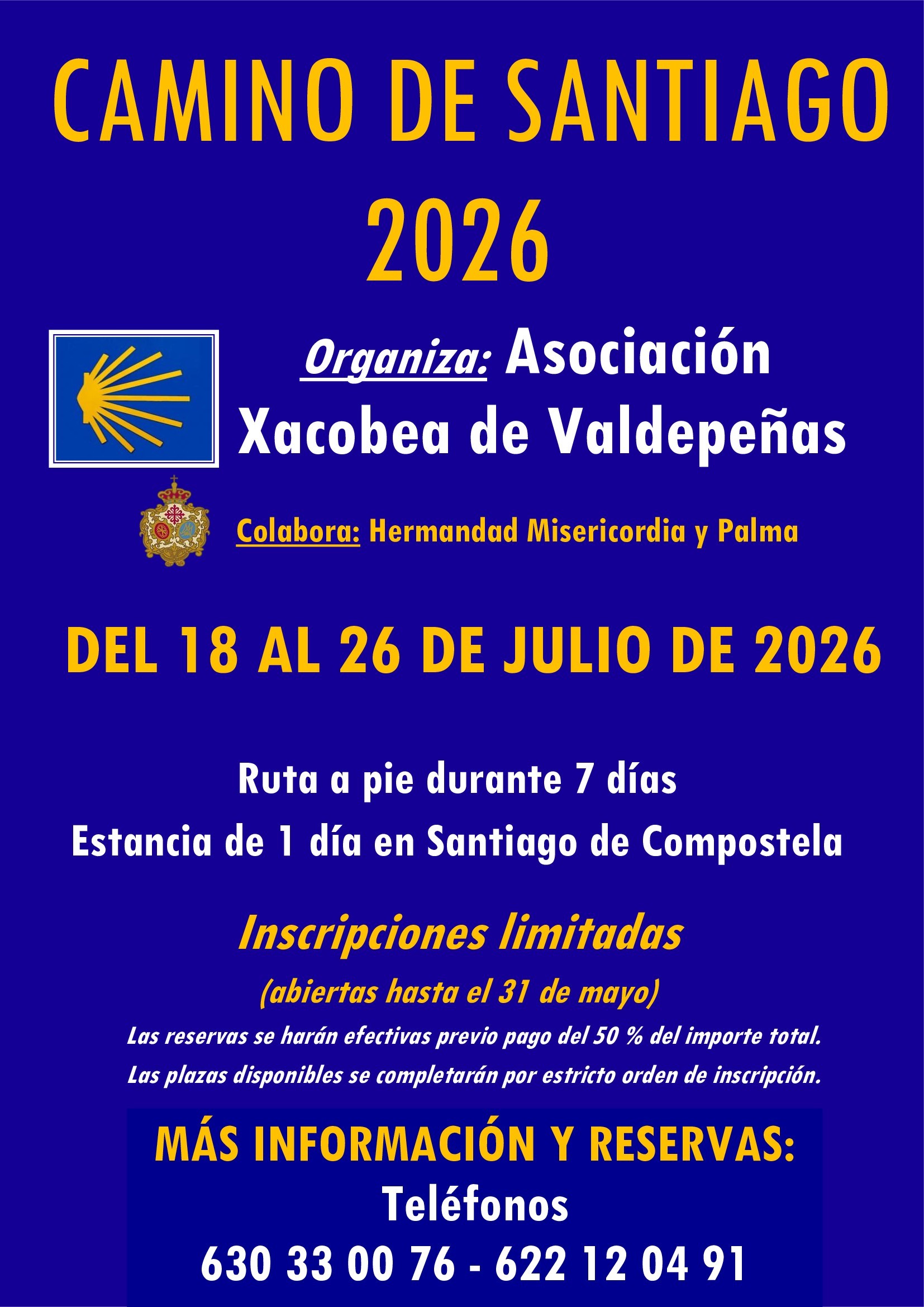 Las reservas se harán por orden de inscripción, realizando el pago del 50 %.