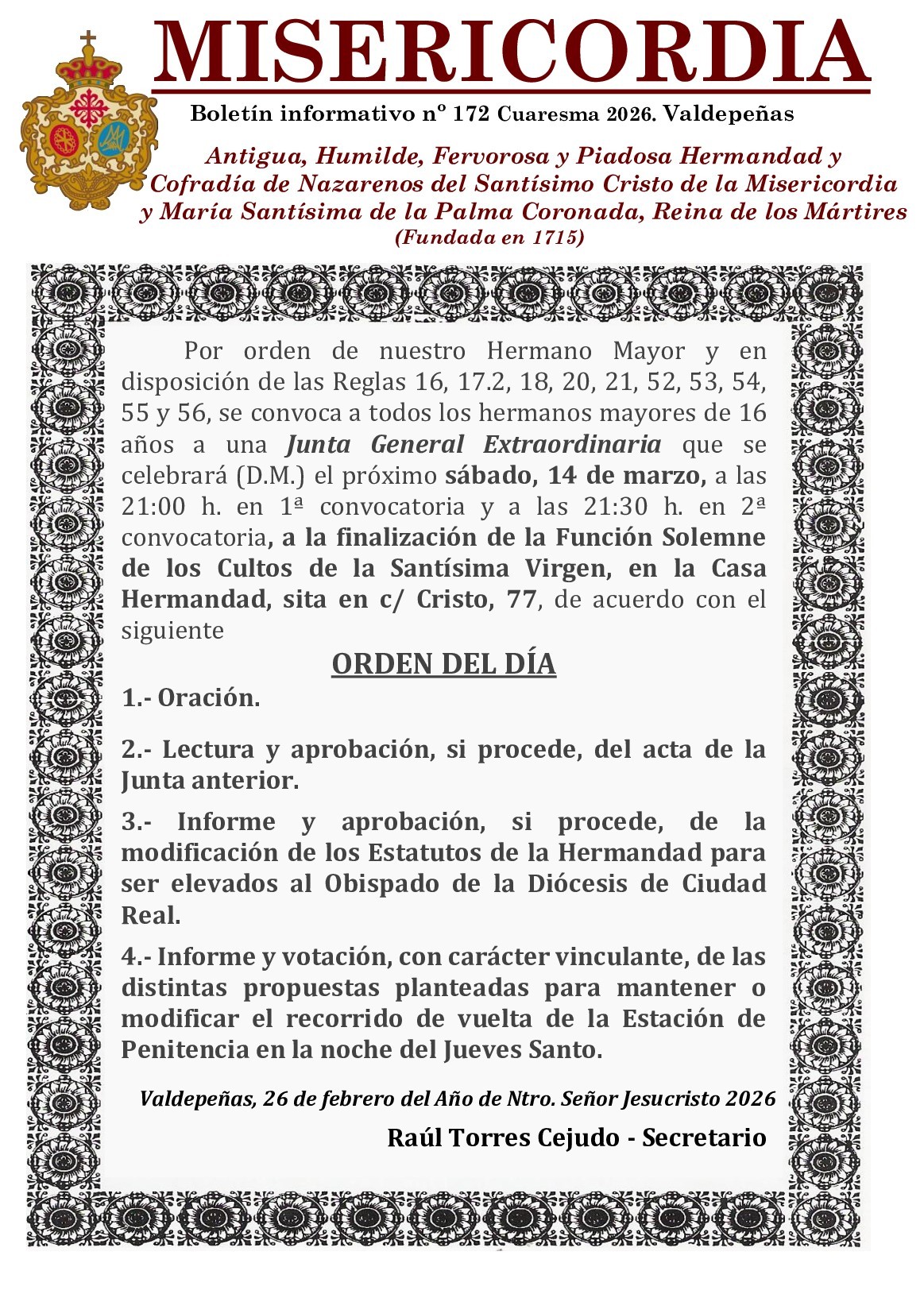 Valdepeñas, 26 de febrero del Año de Ntro. Señor Jesucristo 2026